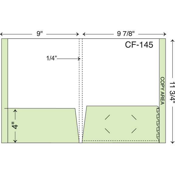 Letter-size presentation folder with right 1/4″ expansion pocket and 1/4″ spine.