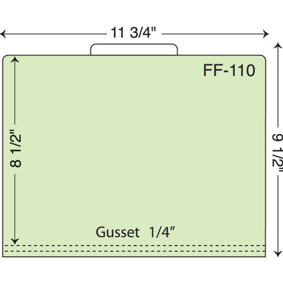 Custom printed paper file folders with center standard copy tab. 3 7/8″ tab in second position. Two 1/4″ scores on front panel.