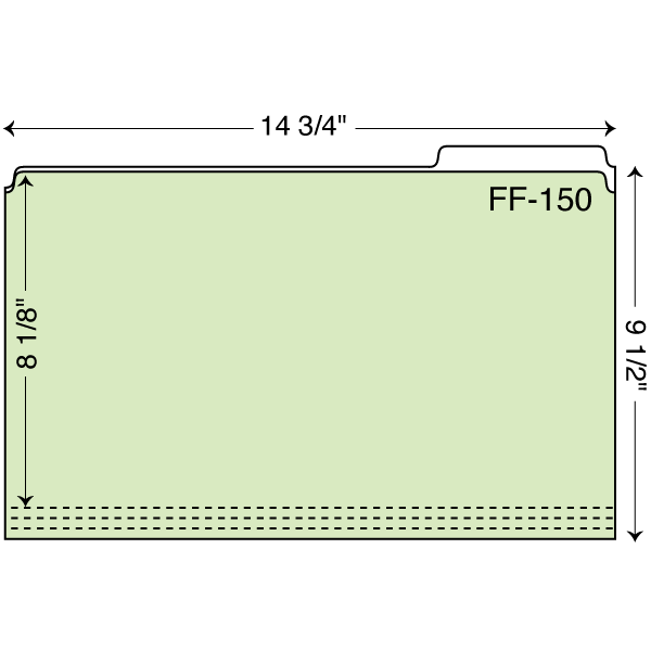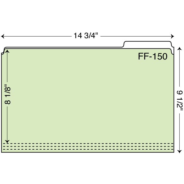 Custom printed legal size file folder with right scroll die cut copy tab. Legal sized, 4″ tab in third position. Three 1/4″ scores on front panel. Additional charges apply.