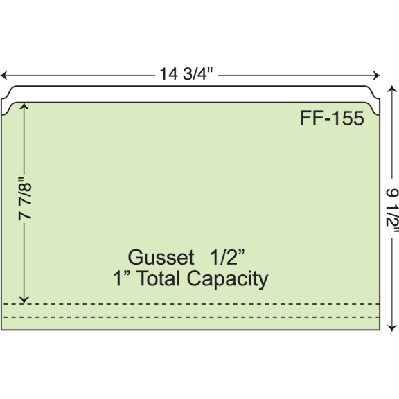 Custom printed legal size file folder with full length scroll die cut copy tab. Legal sized with full tab. Two 1/2″ scores on front panel.