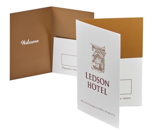 Custom printed gift card holder with 2″ right pocket. Card holder with right pocket. Shipped flat.