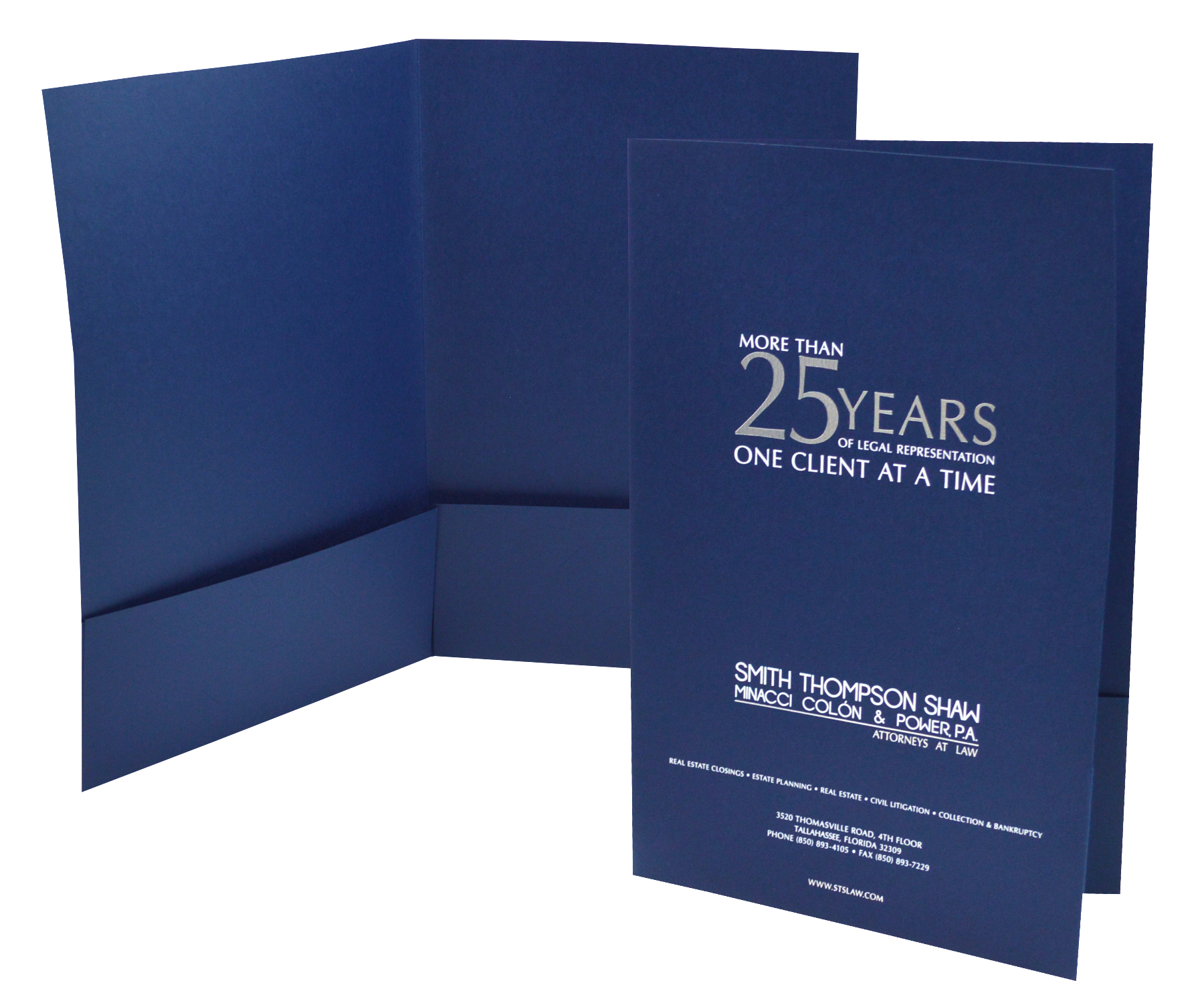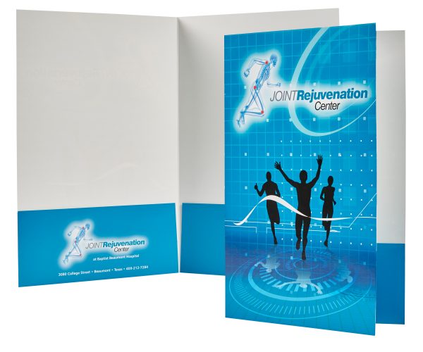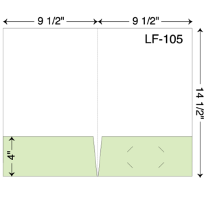 Legal size document folder with two 4″ pockets. Single scored spine. Two pockets