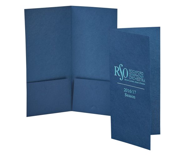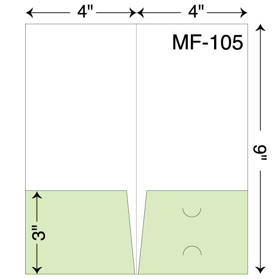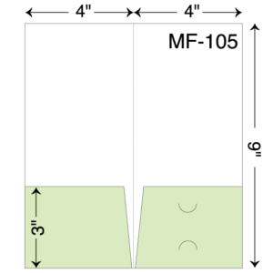 4″ x 9″ Mini presentation folder with two pockets and business card slits. Single scored spine. Two pockets.