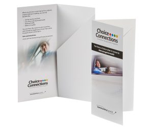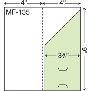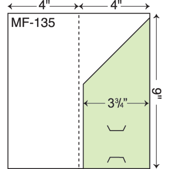 4″ x 9″ Mini presentation folder with one right angled pocket. Single scored spine. One angled right pocket from 8 1/2″ to 4 3/4″.