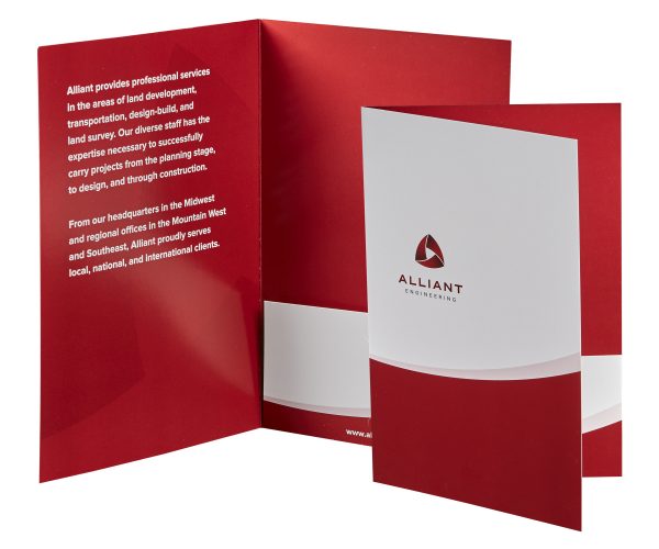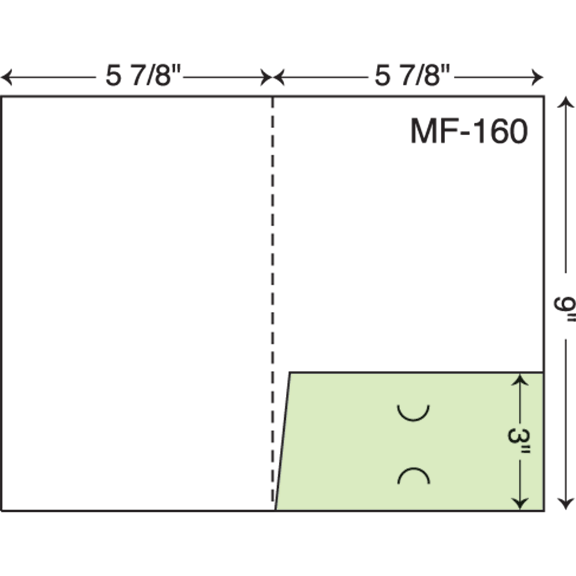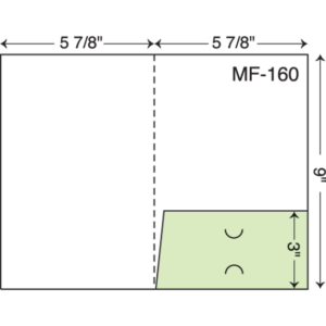 5.875″ x 9″ Mini presentation two pocket folders with business card slits. Single scored spine. Two pockets.