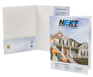Letter sized pocket presentation folders with one left vertical pocket. Horizontal and vertical pocket. Shipped flat.