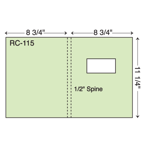 One part report cover. Available with or without 2″ x 4″ window. RC-115 has additional capacity with. 1/2″ spine. Shipped flat.