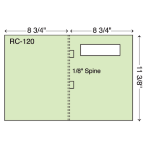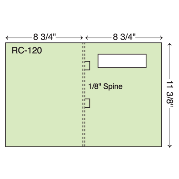 One part report cover. Available with or without 1 3/8″ x 4 3/4″ window. Fold over tabs on spine. Shipped flat.