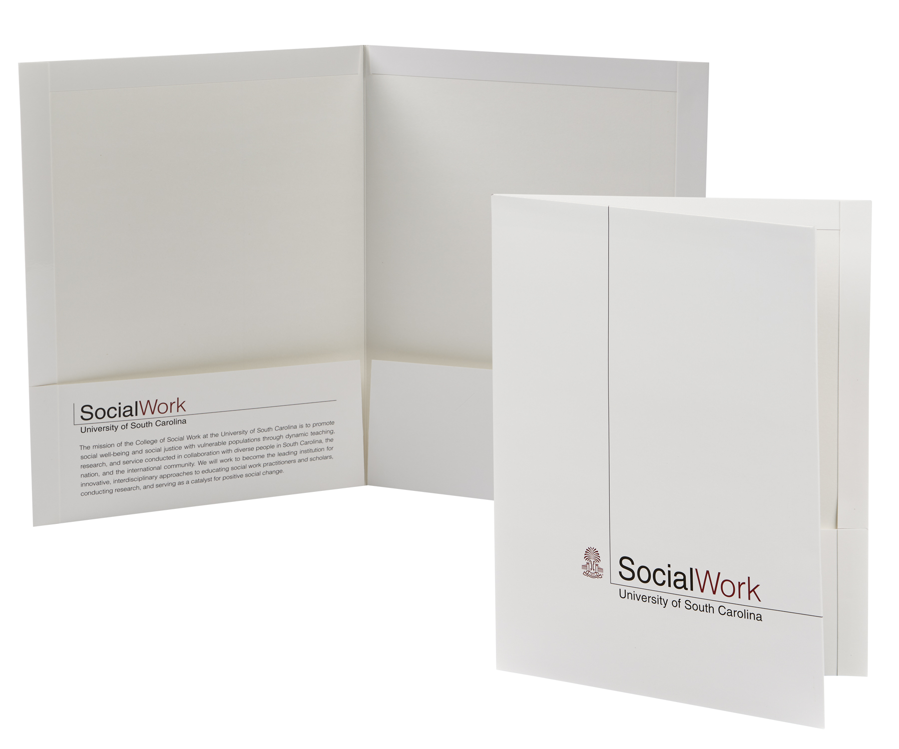 Single scored spine. Two reinforced pockets. Reinforced top.