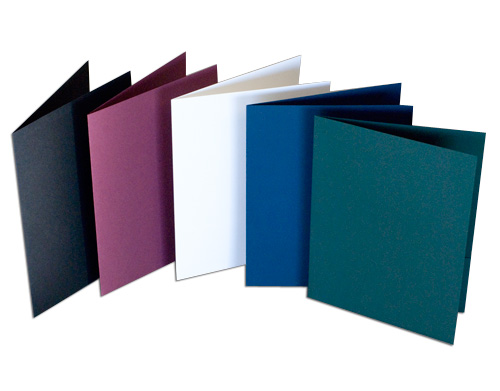 80# Linen folder with single scored spine and two pockets. Four corner horizontal business card slits in right pocket.