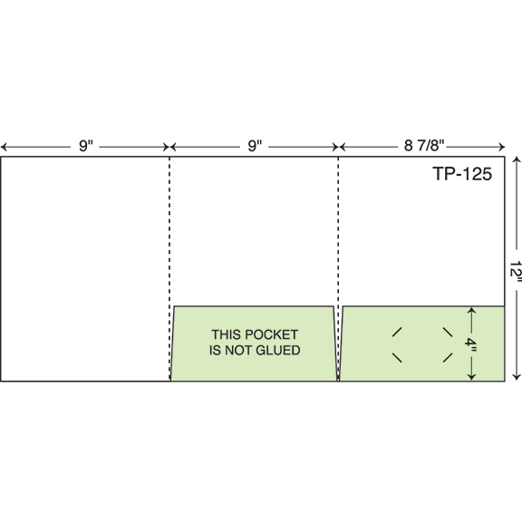 Single scored spines. Two pockets. Unglued pocket on center panel. Glued pocket on right panel.